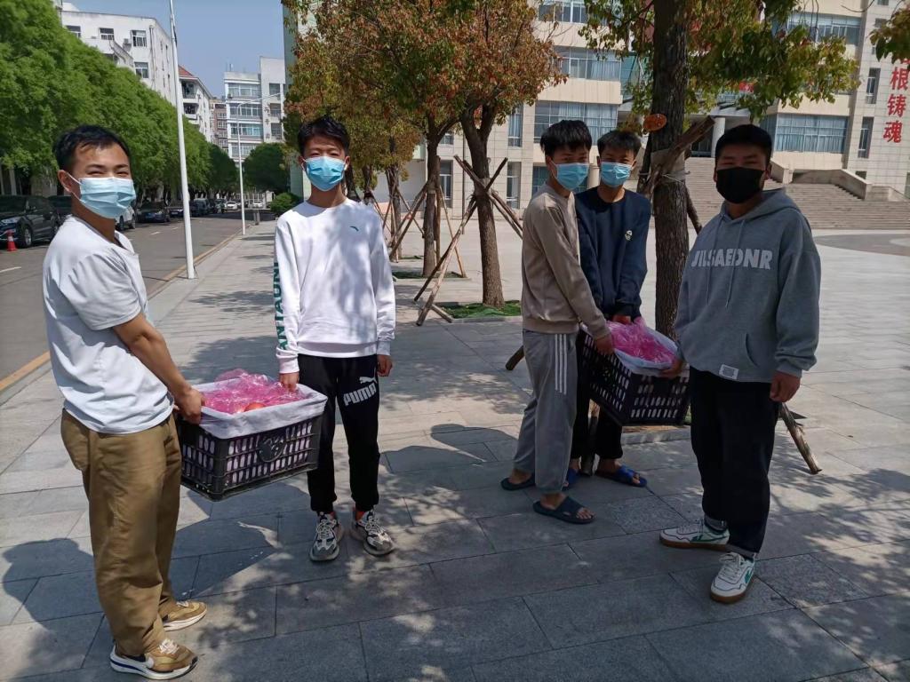 机电工程系主任冯凯、教师党员承姿辛,自费为学生购买500个口罩等慰问品。系办公室主任陈建党积极为教职工和学生提供后勤服务保障。教工党部书记贾耀曾,自掏腰包为所包班级学生购买两大箱苹果。教师党员谷广超、张群威也为学生购买了香蕉、桔子、苹果、梨等水果。