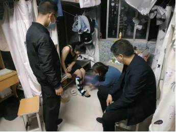 日常查寝过程中,系部老师们专程前往王云青宿舍,询问她脚部恢复情况,考虑到该生行动不便,每天前往核酸检测点路程较远,协调工作人员,借来了推车和三轮车,推着该生完成了核酸采集,并且安排三轮车送学生到宿舍。21级空乘一班的范力萌同学,也是下楼时一不小心崴了脚。热心的20级酒店二班王小可学长,二话不说背起了学妹走向操场核酸检测点。