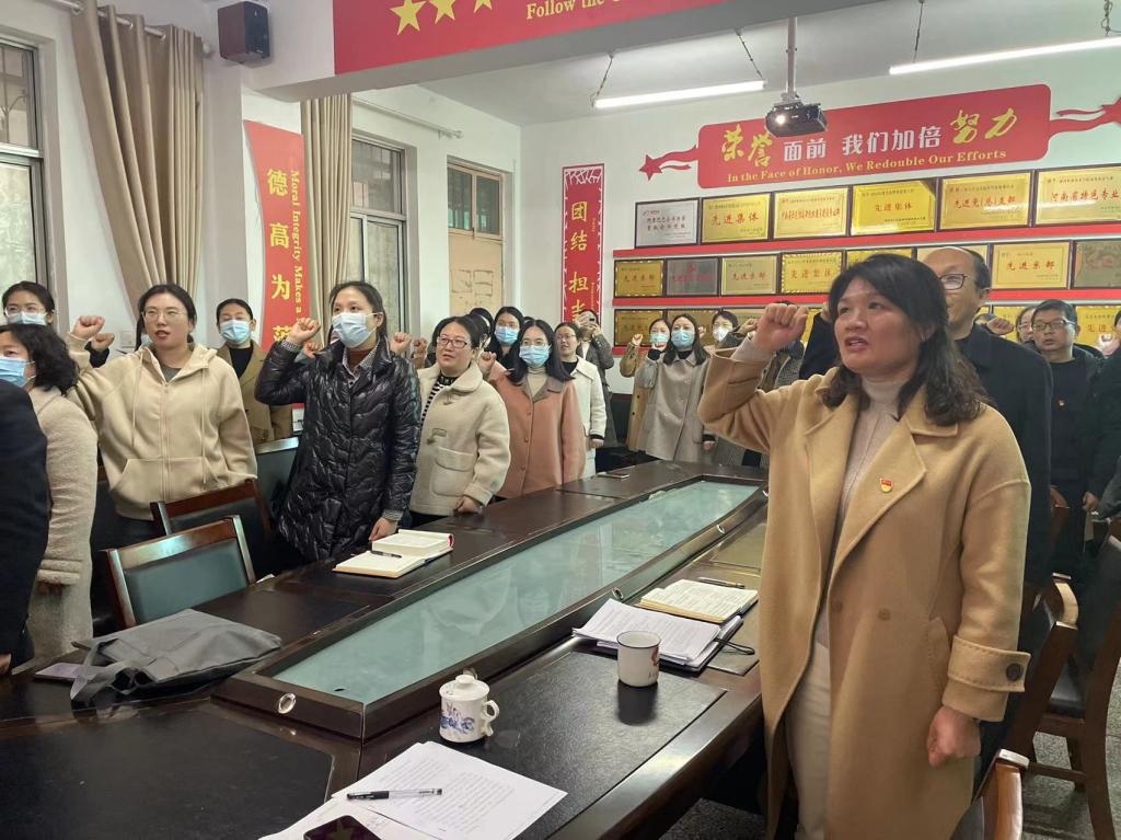 党总支副书记吕红梅带领全体教师重温教师誓词,嘹亮的誓言、铿锵有力的宣誓声代表着全体教师立志献身教育的荣誉感、自豪感和责任感,是全体教师凝心聚力为学院高质量发展携手奋进最坚实的动力。