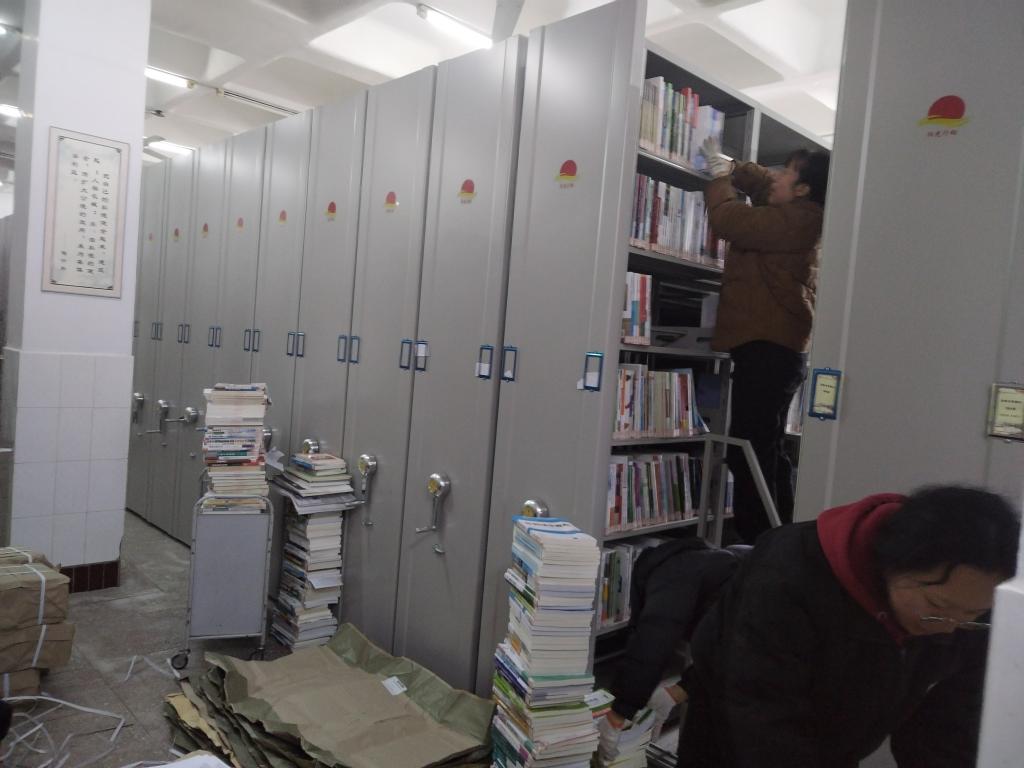 为确保新书能够尽快上架,馆藏布局更加合理、优化,上学期期末采编部门与流通部门就开展馆藏数据摸排研究,严格按照中图法分类规范,根据书架规模尺寸,图书大类数量,制定详细的上架方案。新学期伊始,全馆人员即投入到图书倒架排架、书架加固调整、打扫清理等工作,为新书入库上架做好准备。